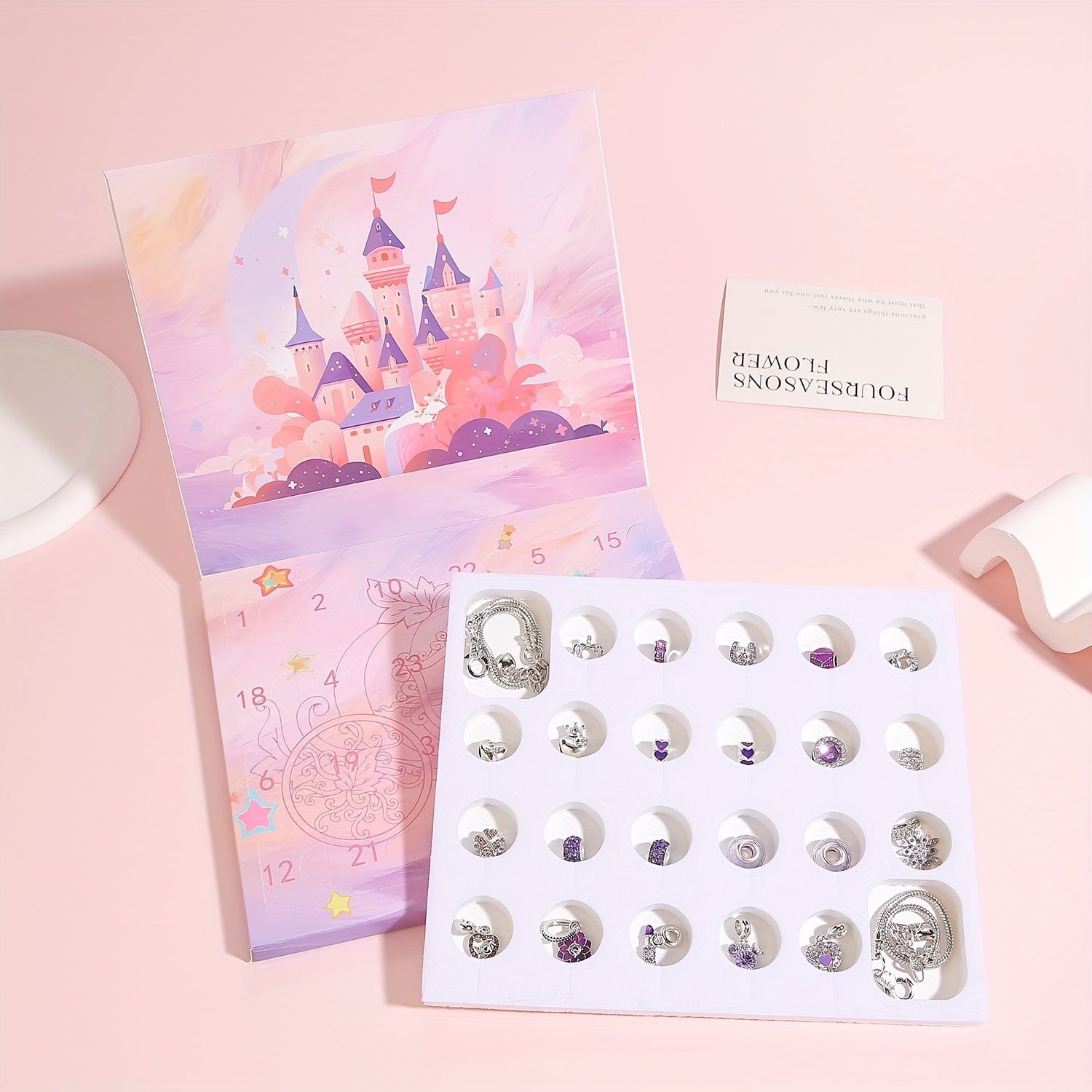 - 24 Tage Kreative Überraschungen: Verfügt über 24 einzelne Fächer, die jeweils eine einzigartige große Lochperle oder einen Charm für die tägliche Montage verbergen.